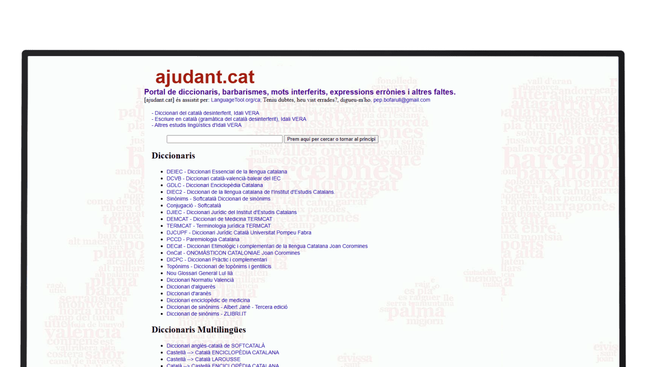 Ajudant.cat és un portal de suport lingüístic que ofereix accés a diccionaris i recursos per detectar barbarismes, mots interferits, expressions errònies i altres faltes habituals. L’eina integra funcionalitats assistides per LanguageTool per ajudar a revisar i millorar textos.