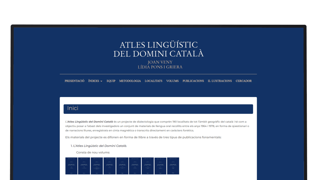 - Fitxes de localitats: informació sobre les 190 localitats enquestades, incloent-hi els informants, els enregistraments i els punts d’enquesta.