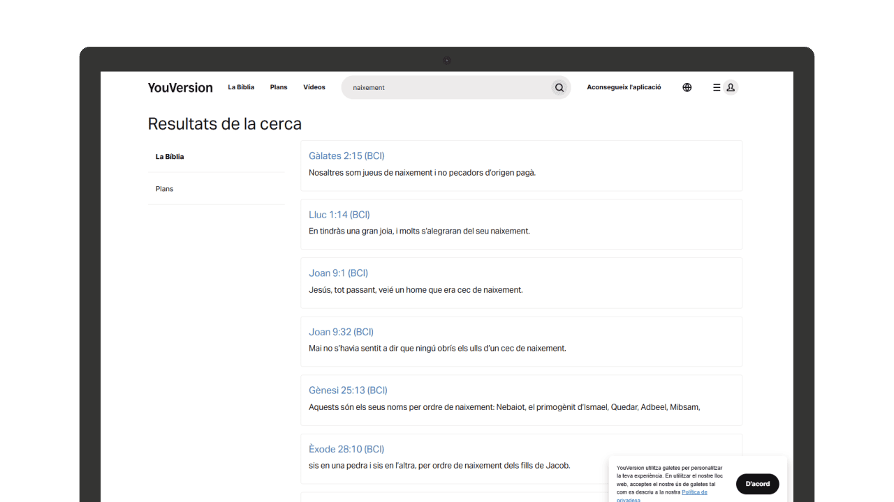 - Plans de lectura i devocionals: segueix plans temàtics per llegir la Bíblia de manera estructurada i progressiva.