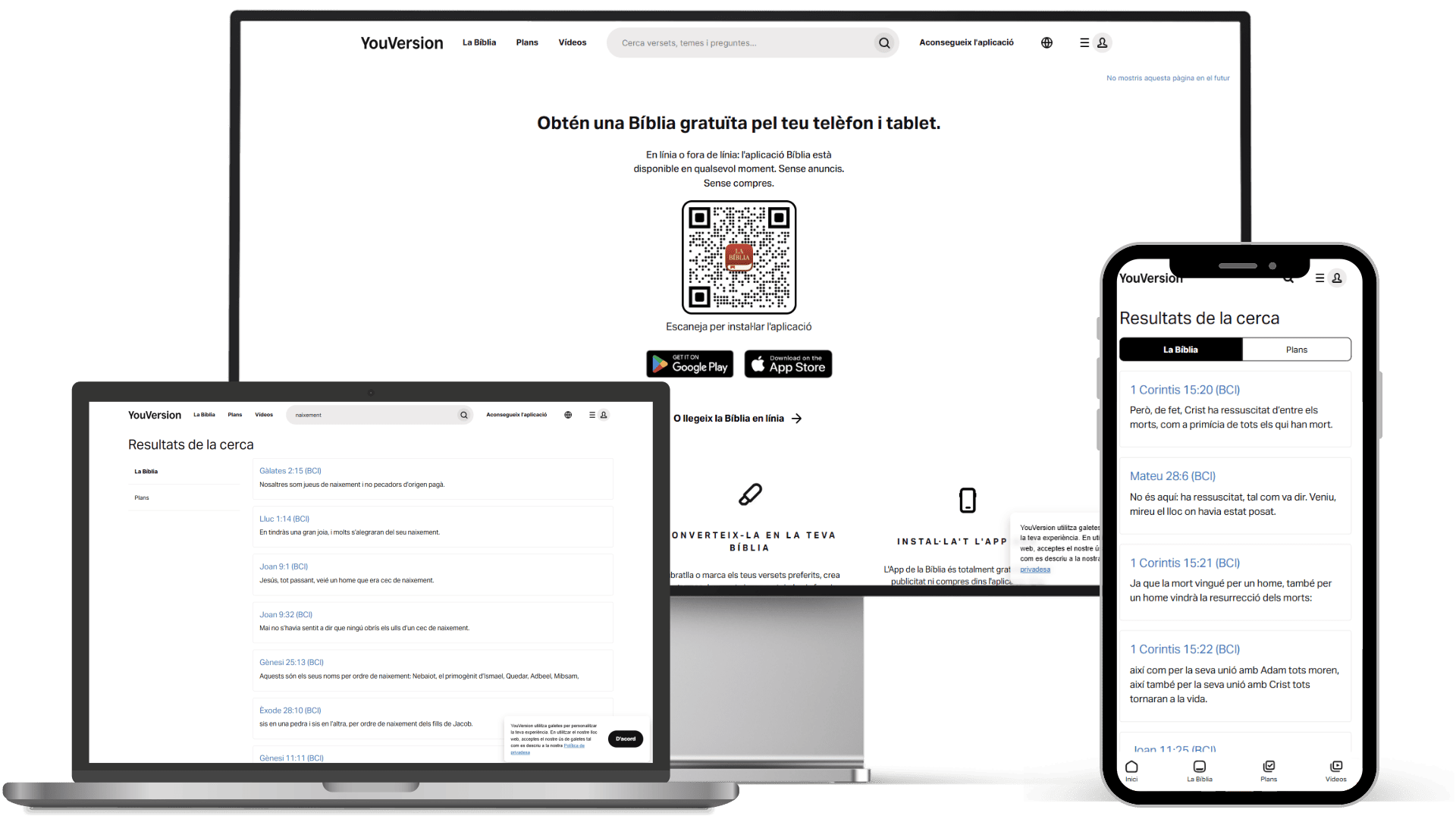 - Llegeix i escolta la Bíblia: accedeix a múltiples versions de la Bíblia en català i en altres idiomes, amb moltes disponibles en format d’àudio.