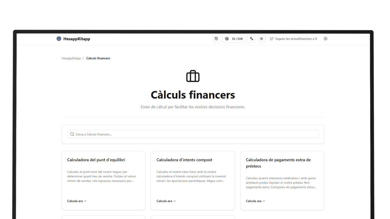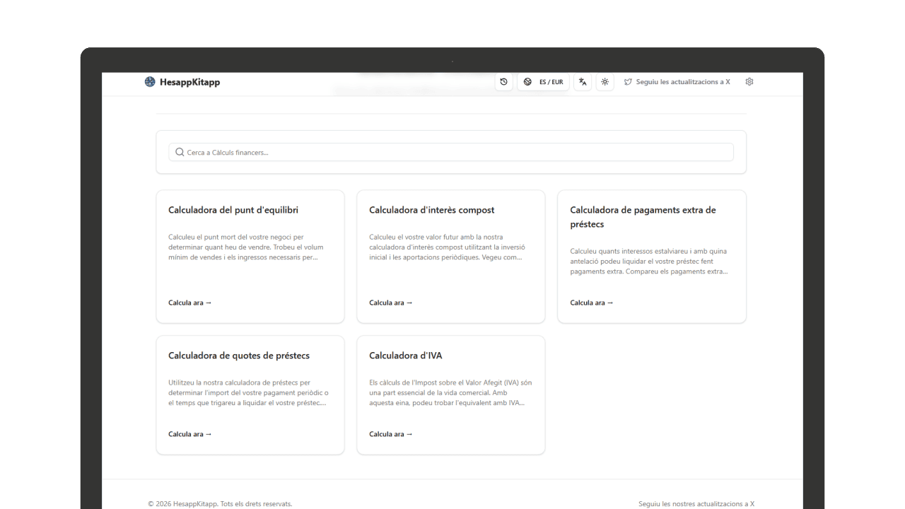 Càlculs financers de HesappKitapp és un conjunt d’eines en línia orientades a facilitar la presa de decisions econòmiques. Inclou simuladors de préstecs, inversions i fiscalitat, així com eines de planificació empresarial per analitzar costos i rendibilitat.