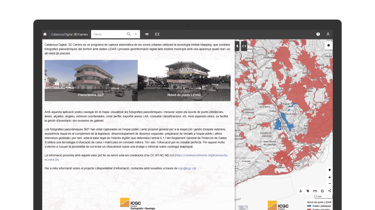 Carrers 3D és un visor cartogràfic de l’Institut Cartogràfic i Geològic de Catalunya (ICGC) que permet visualitzar carrers, edificis i entorns urbans en tres dimensions. Forma part del projecte Catalunya Digital i ofereix una representació detallada del territori amb navegació interactiva.