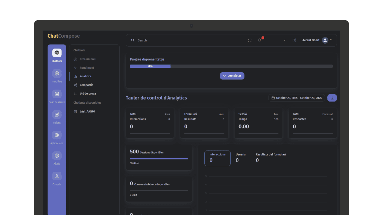 ChatCompose és una plataforma que permet dissenyar i desplegar chatbots intel·ligents per a webs, aplicacions i xarxes socials. Basada en tecnologies d’intel·ligència artificial i processament del llenguatge natural, facilita la creació de guions de conversa per atendre clients, generar vendes i optimitzar processos d’atenció 24/7.