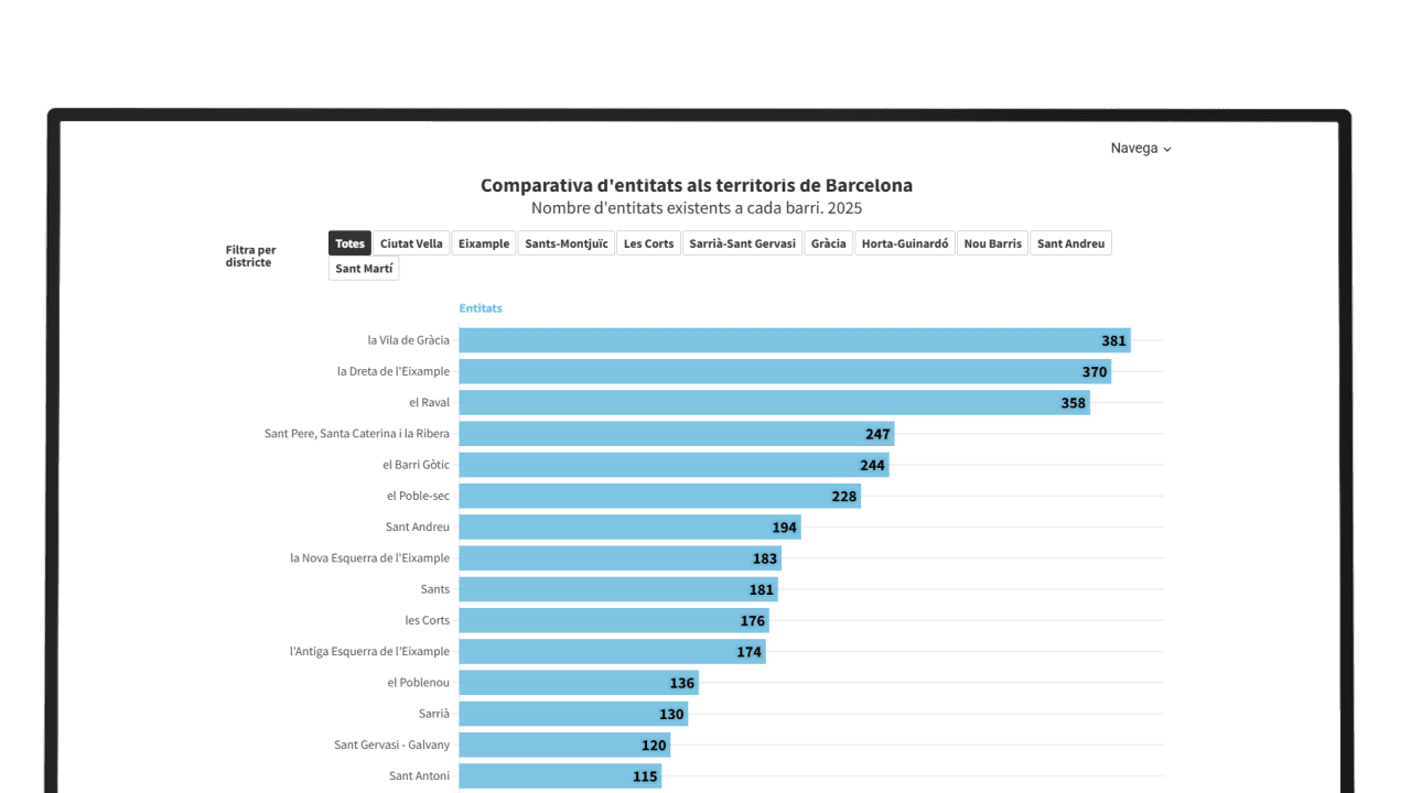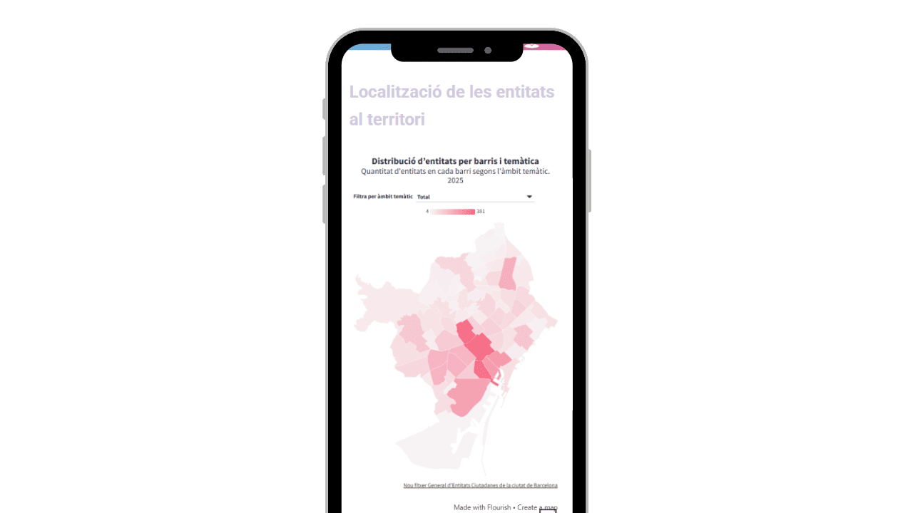 - Mapeig de l’associacionisme: dades d’entitats per territoris i temàtiques a la ciutat de Barcelona.