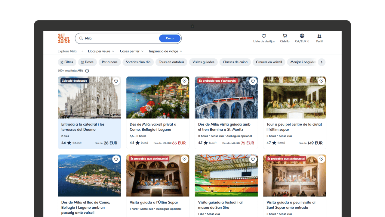 GetYourGuide és una plataforma global per descobrir i reservar tours, visites guiades, entrades a atraccions i activitats de lleure arreu del món. Amb milers d’experiències disponibles a centenars de destinacions, permet reservar directament amb proveïdors locals.