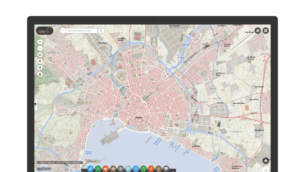 - Eina d’anàlisi i mesura: permet mesurar distàncies, superfícies i coordenades sobre el mapa de forma interactiva.