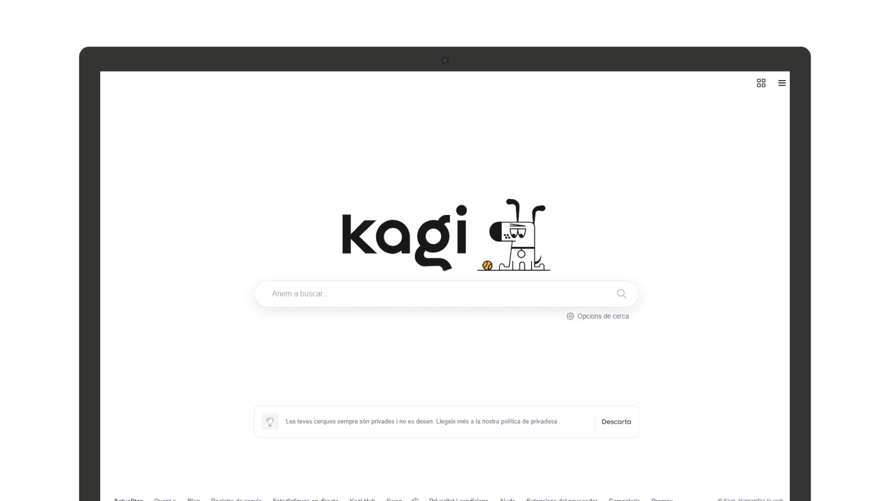 Kagi és un cercador web centrat en la privadesa i la qualitat dels resultats, sense publicitat ni perfilatge d’usuaris. Ofereix una experiència de cerca més neta i precisa, amb eines avançades per personalitzar les fonts, prioritzar continguts i filtrar resultats de manera eficient.