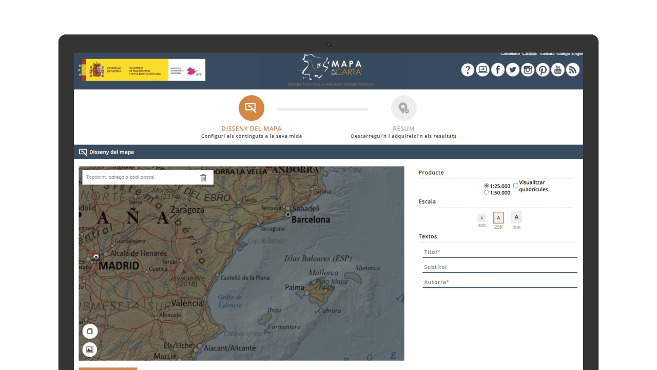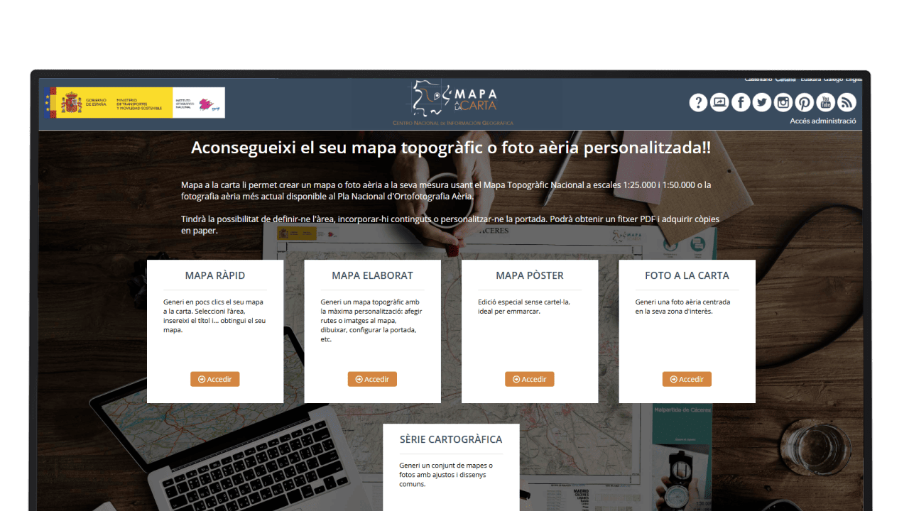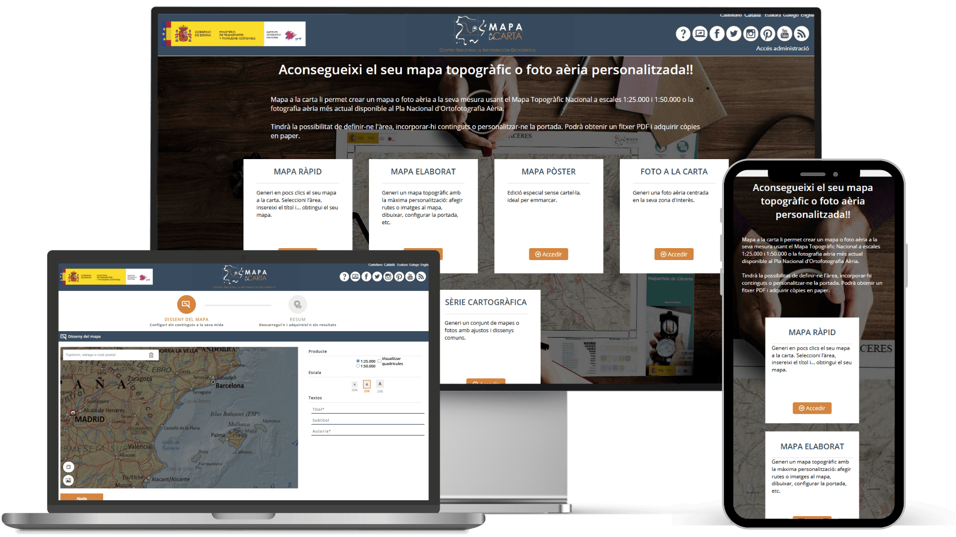 Mapa a la Carta és una aplicació web de l’Institut Geogràfic Nacional (IGN) i el Centre Nacional d’Informació Geogràfica (CNIG) que permet generar mapes topogràfics i fotografies aèries personalitzades de qualsevol zona d’Espanya.