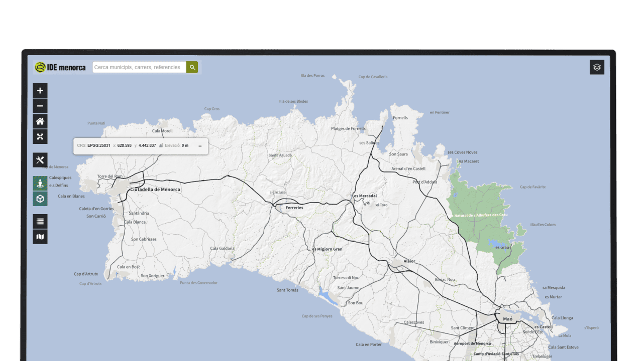 IDE Menorca és la infraestructura de dades espacials del Consell Insular de Menorca i ofereix diversos visors cartogràfics que permeten consultar, explorar i utilitzar informació geogràfica de l’illa.