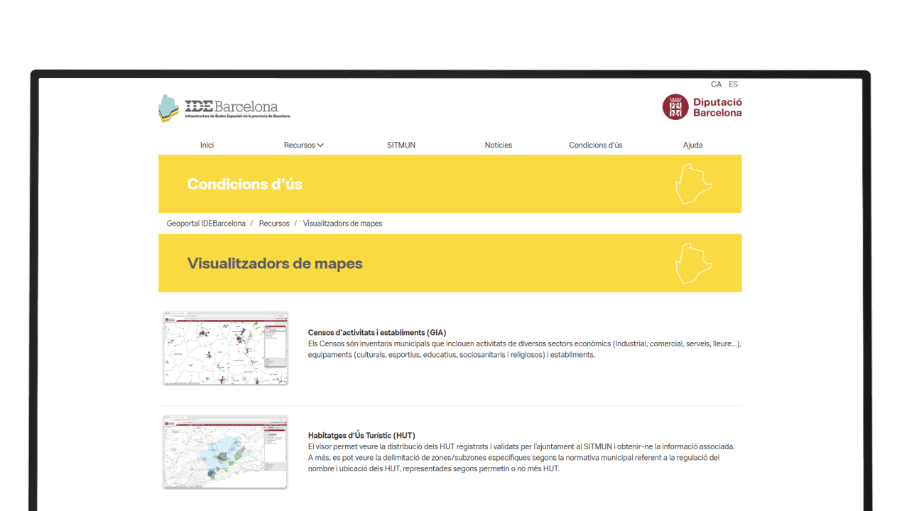 IDE Barcelona és la infraestructura de dades espacials de la Diputació de Barcelona i ofereix diversos visualitzadors cartogràfics per consultar informació territorial de la província.